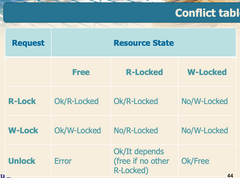 Lock manager exploits a lock table and the conflict table.