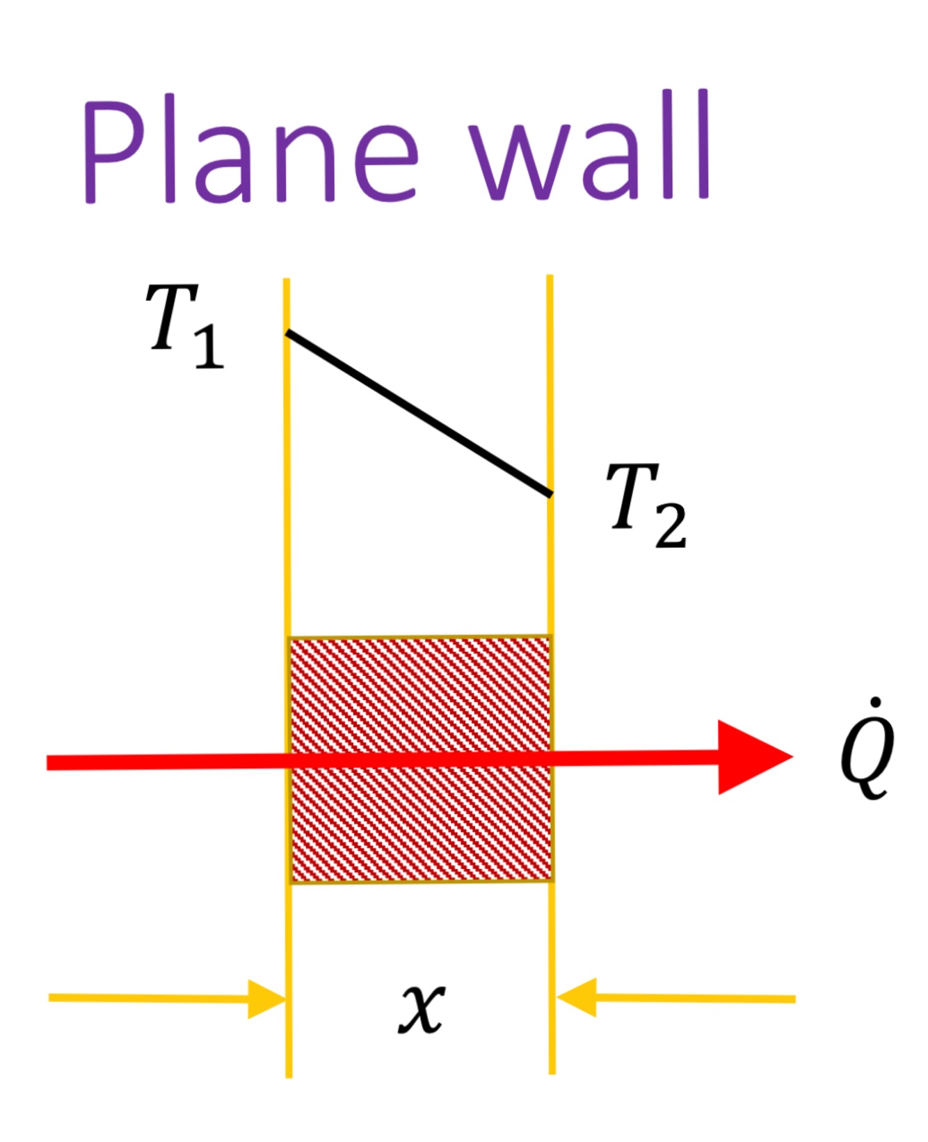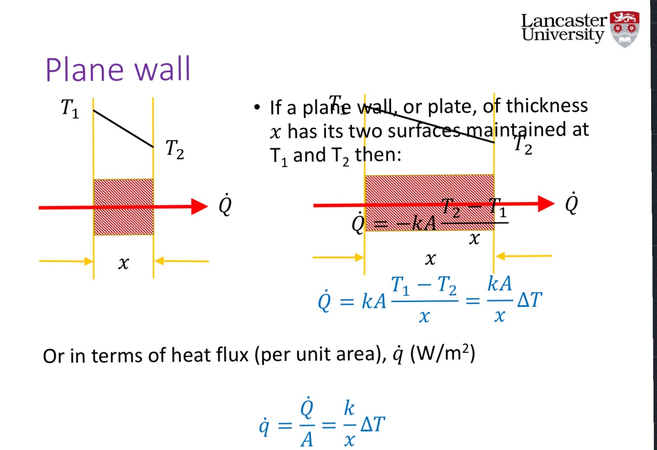 Derive a formula for the Heat flux through conduction through a plane wall