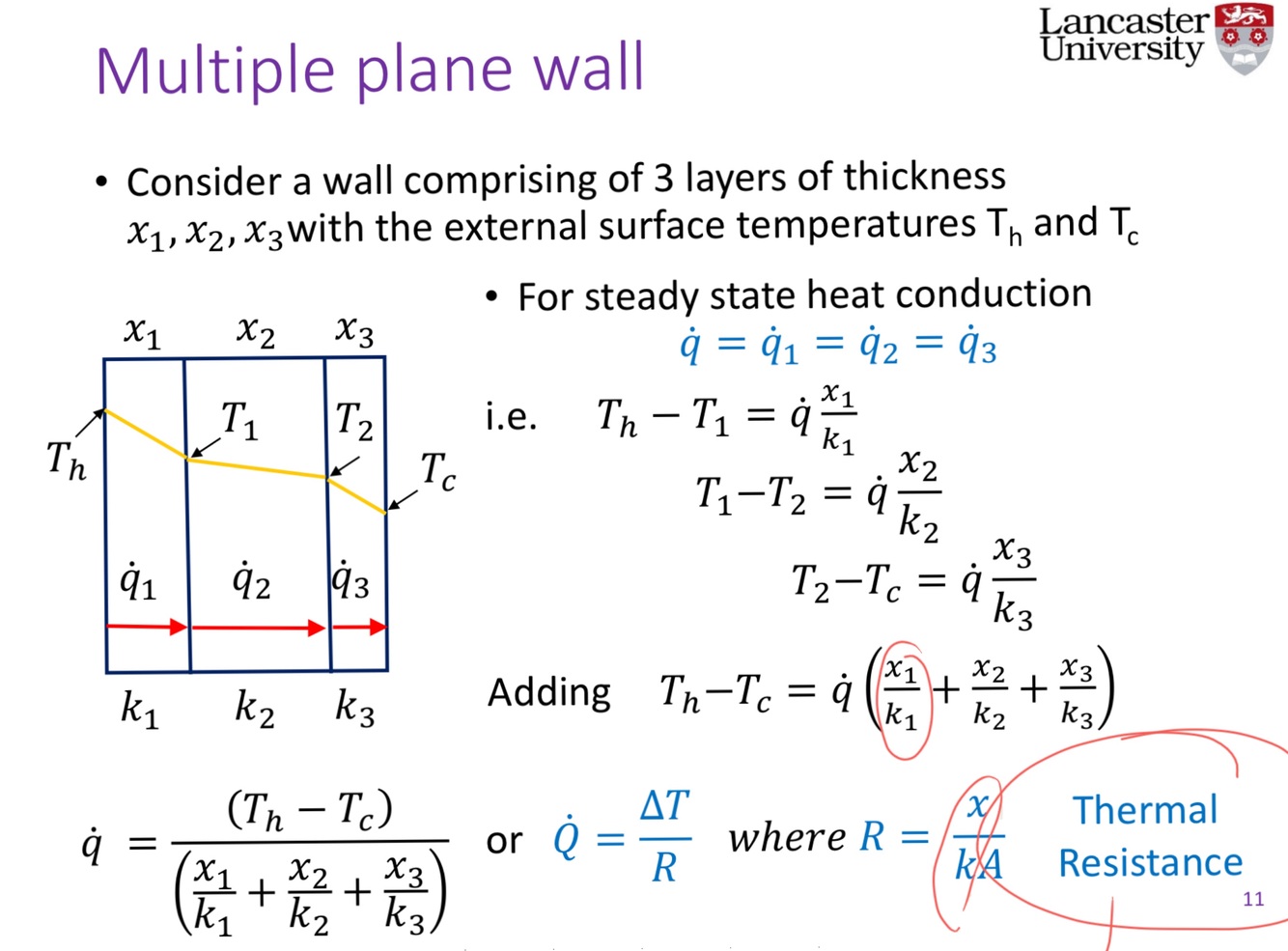 Derive the formula for Heat Flux, Heat Flow and thermal resistance.