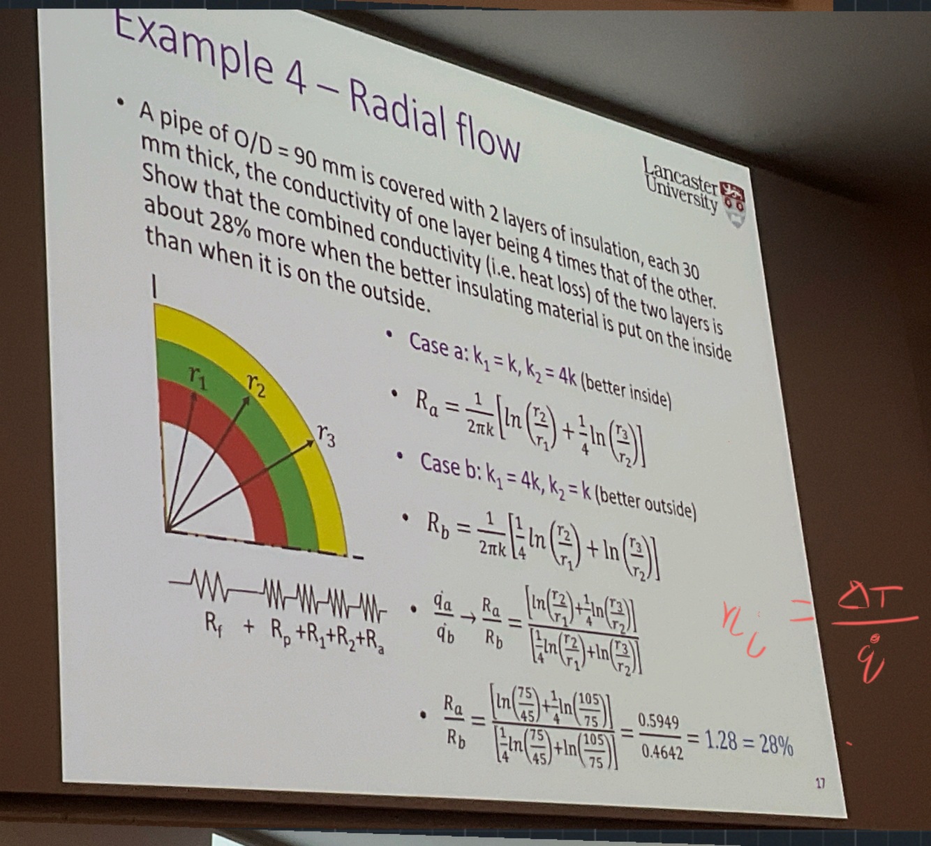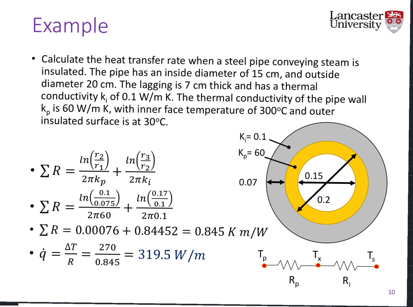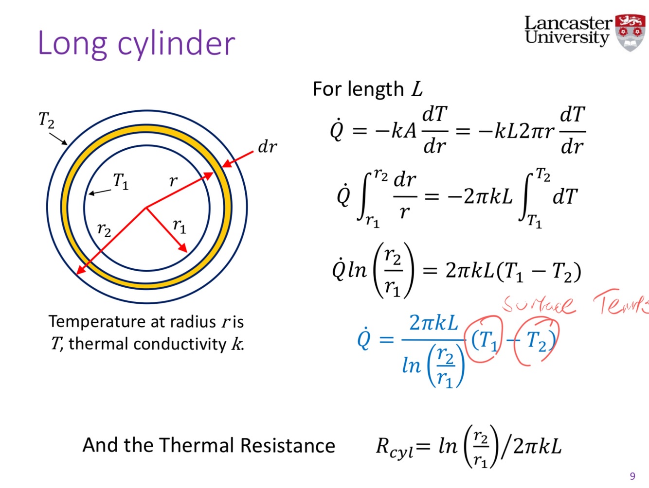Derive the formula for the heat transfer on a cross section of a pipe (1 dimensional flow)