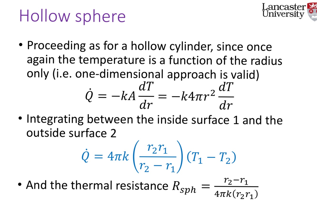 Derive the formula for the 1 dimensional heat flow from a sphere