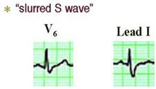 Look in V5, V6, and Lead I for a “slurred S” wave