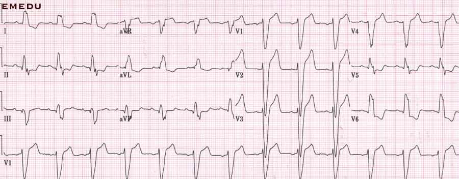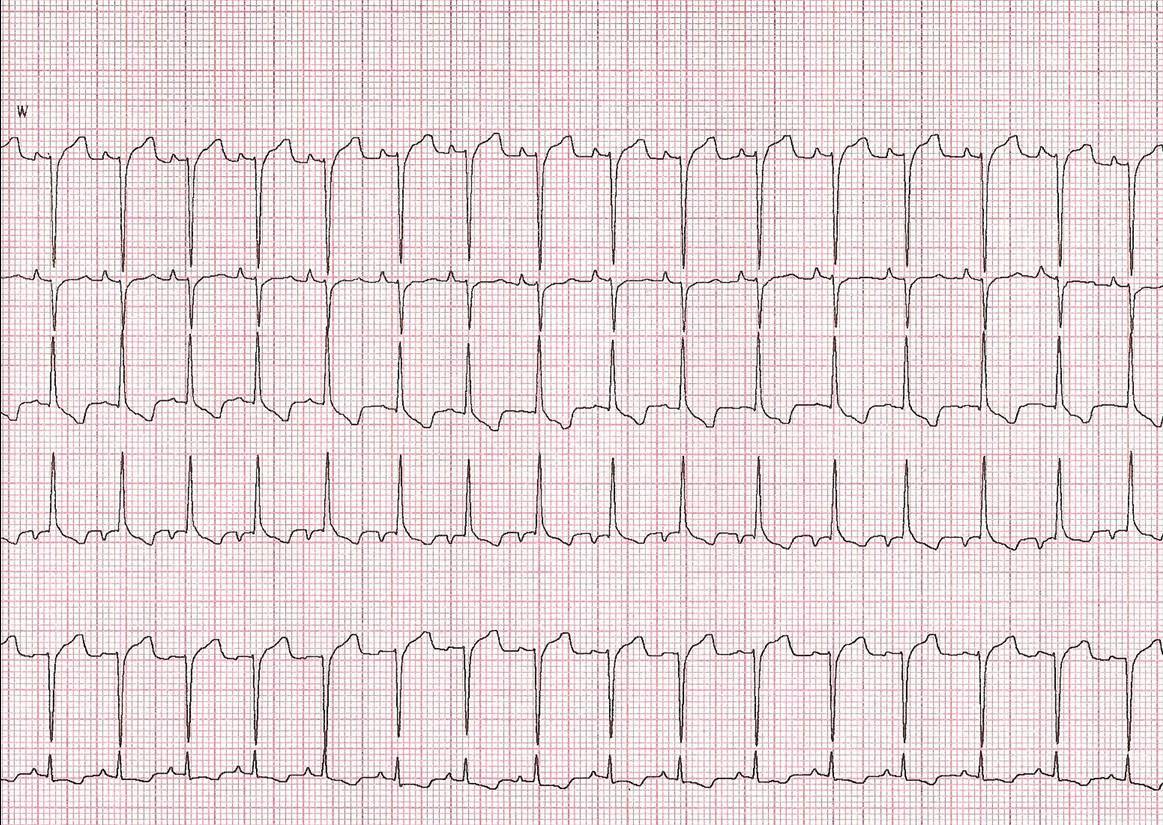 Notice “slurred S” wave in V5, V6, and I.