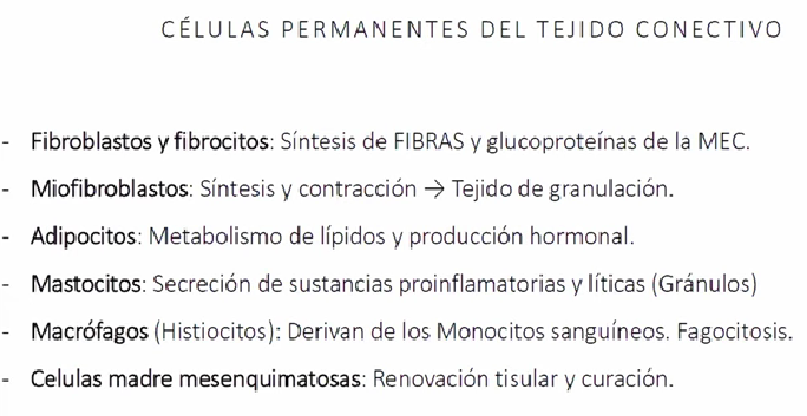 Células fijas y transitórias + Sustancia Intercelular (Sustancia amorfa y fribas)