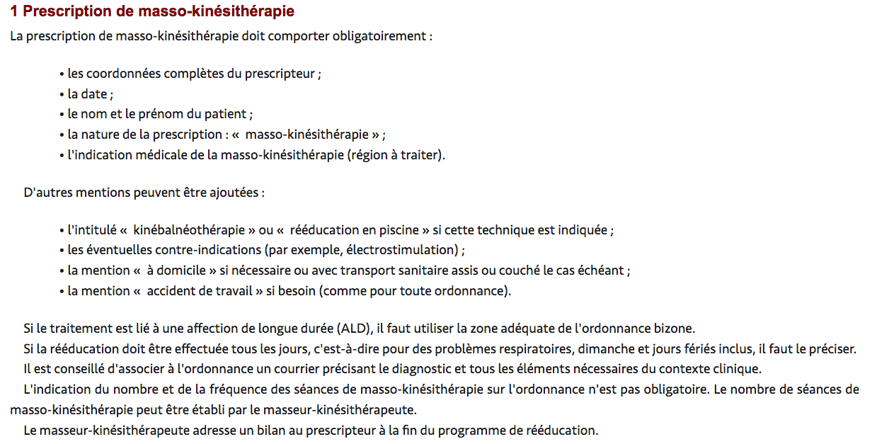 Mentions obligatoires sur ordonnance de kiné ?