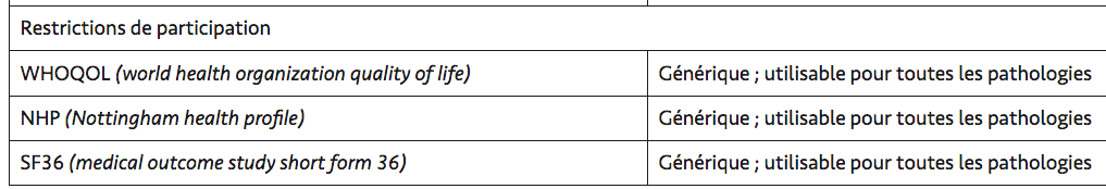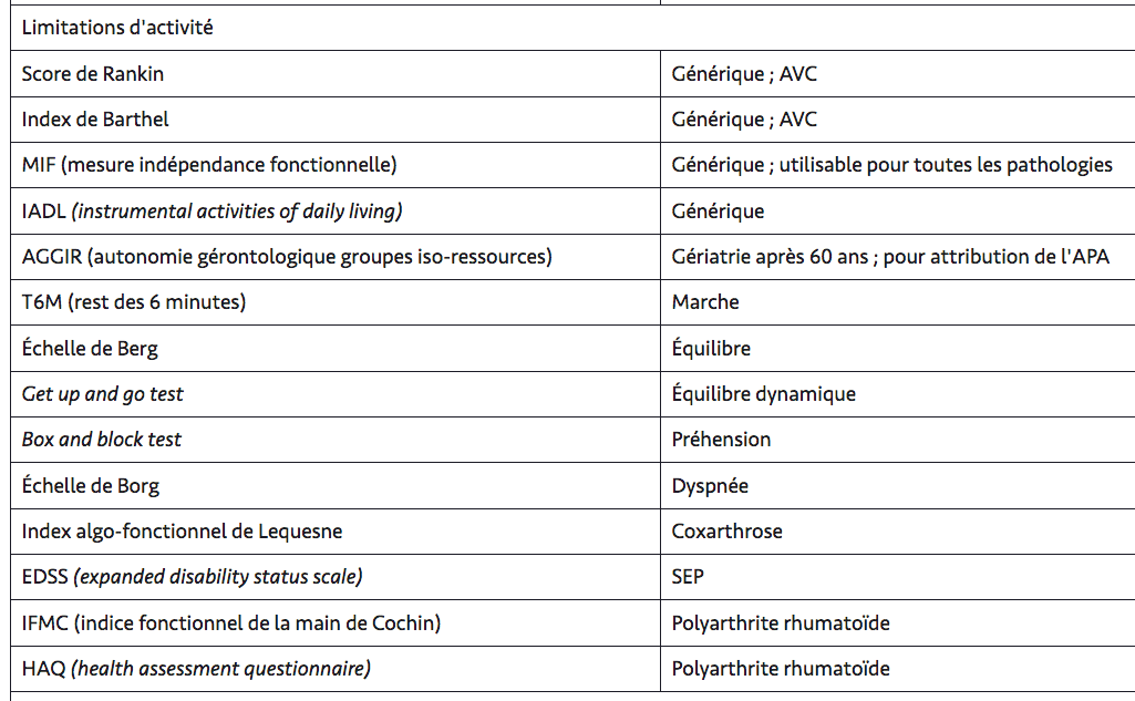 Echelles de limitations d’activités
