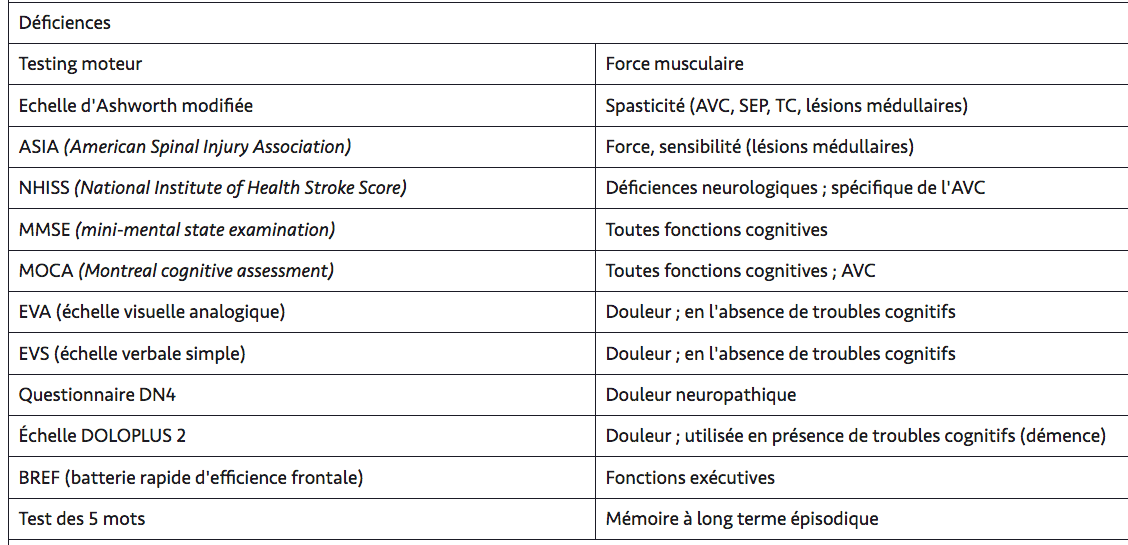 Principales échelles à connaître de déficience motrice