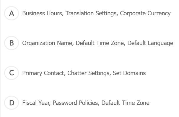 B. Organization Name, Default Time Zone, Default Language