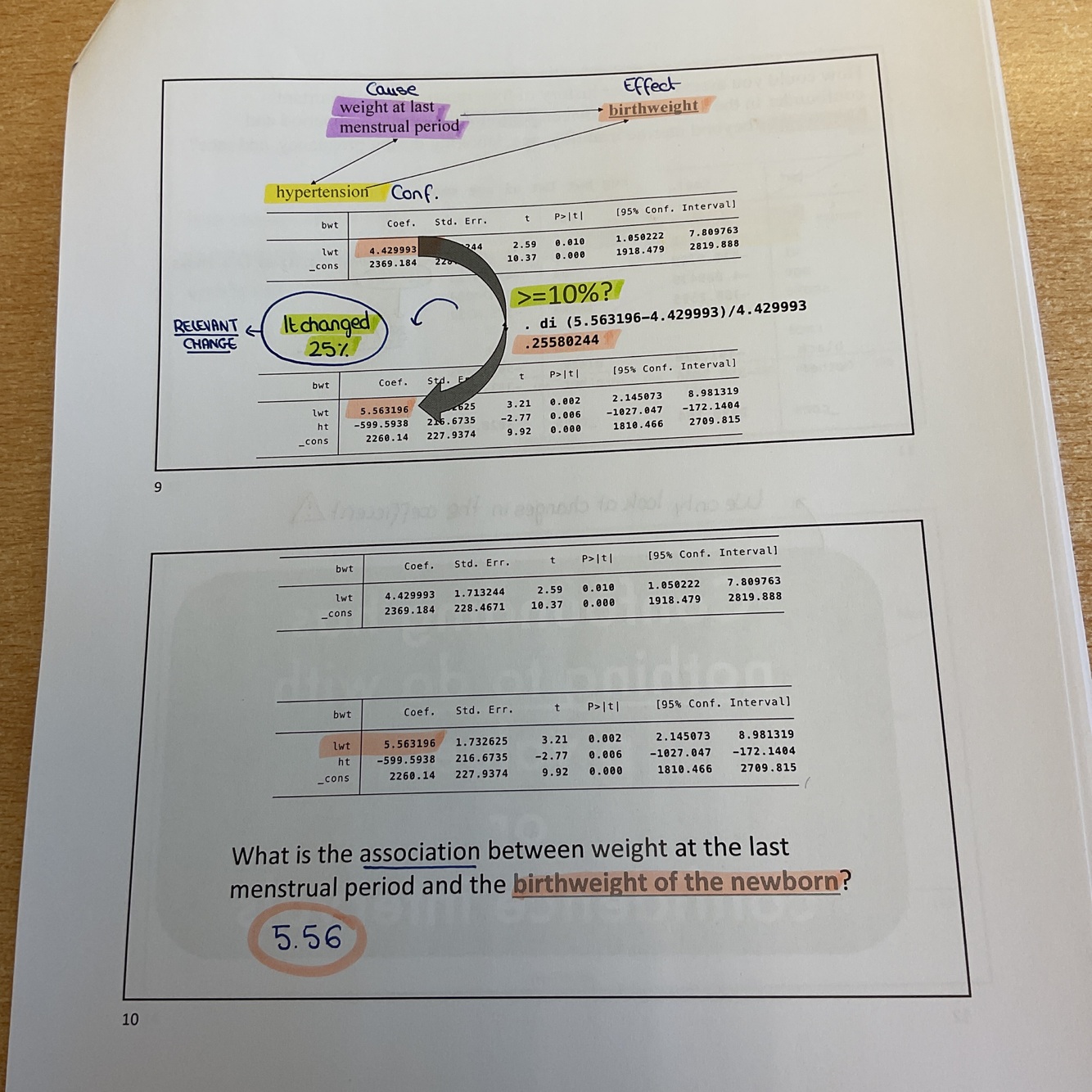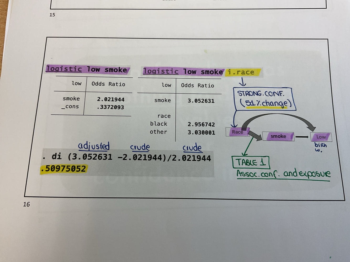 Necesitamos crude and adjusted values. We look at changes in the coefficient.