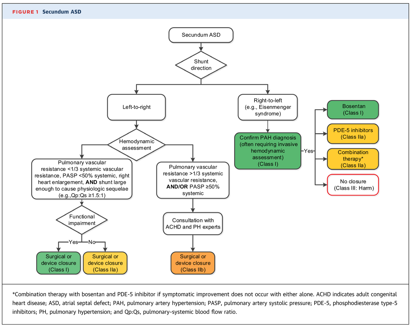 -CIV et évidence de surcharge de volume des cavités gauches et shunt hémodynamiquement significatif (Qp :Qs ≥1.5), fermeture recommandée si TA pulmonaire <50% de la TAS systémique et que les résistances pulmonaires sont moins 1/3 des résistance systémiques