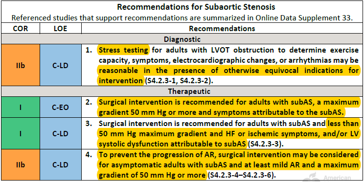 A. Nommer les indications chirurgicales pour une sténose sous-aortique.