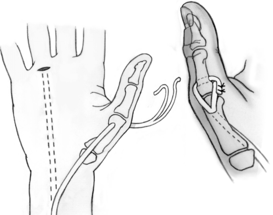 Uses Flexor digitorium superficialis or abductor digiti minimi