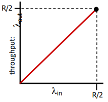 A: as red (lambda)in’ increases, all arriving blue pkts at upper queue are dropped, blue throughput g 0