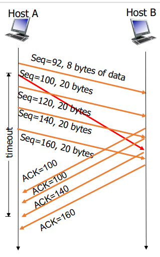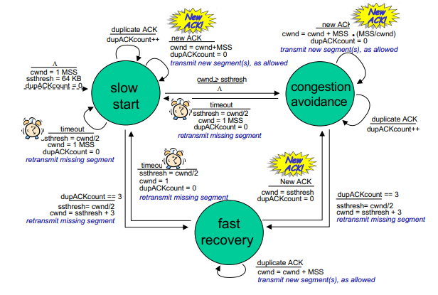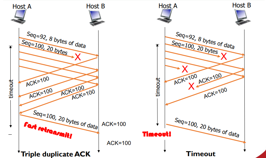 “Since TCP does not know whether a duplicate ACK is caused by a lost segment or just a reordering of segments, it waits for a small number of duplicate ACKs to be received (in this case, 3).