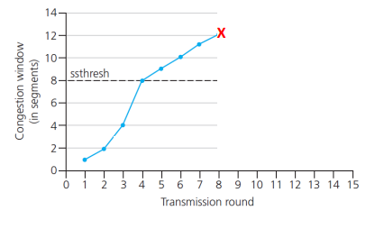- Cut to 1 MSS (maximum segment size) when loss detected by timeout (TCP Tahoe)