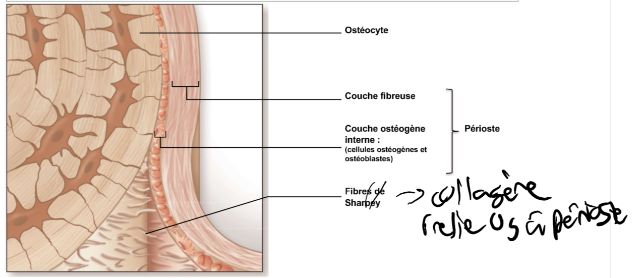 membrane très petite qui tapisse interne os compact et spongieux( entre os et moelle)