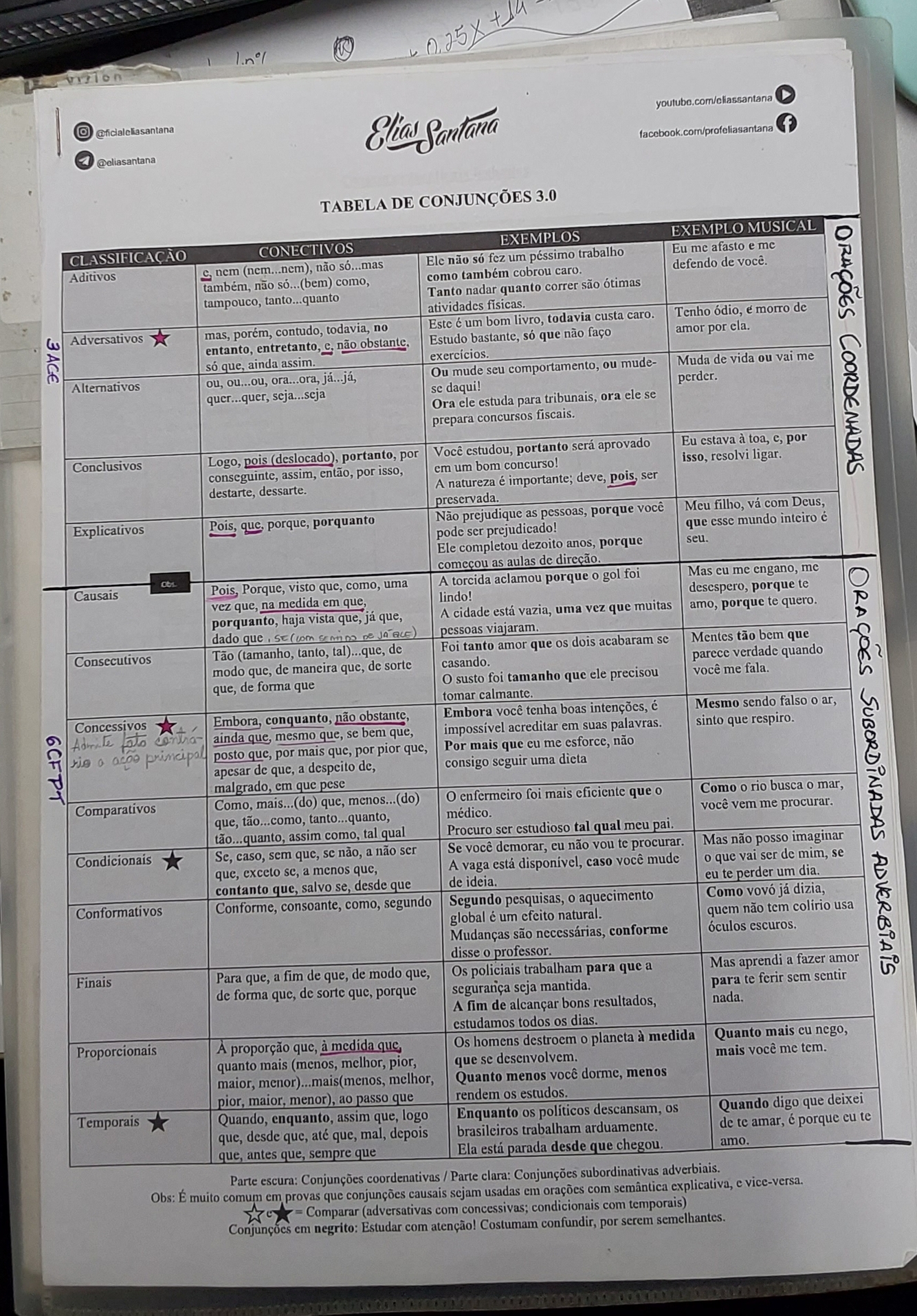 Tabela de Conjunções