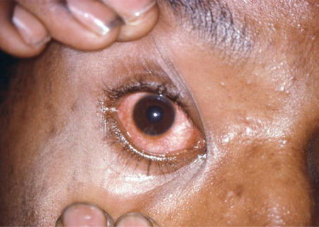 Although minor conjunctivitis with encrusting of the eyelids is common and often benign, a purulent discharge may indicate the presence of a serious infection (for example, with chlamydia or gonococcus).