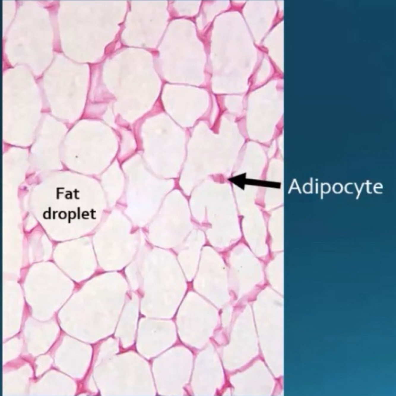 Under skin, around kidneys and eyes. Abdomen and breasts.