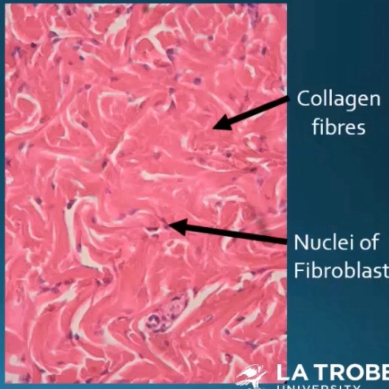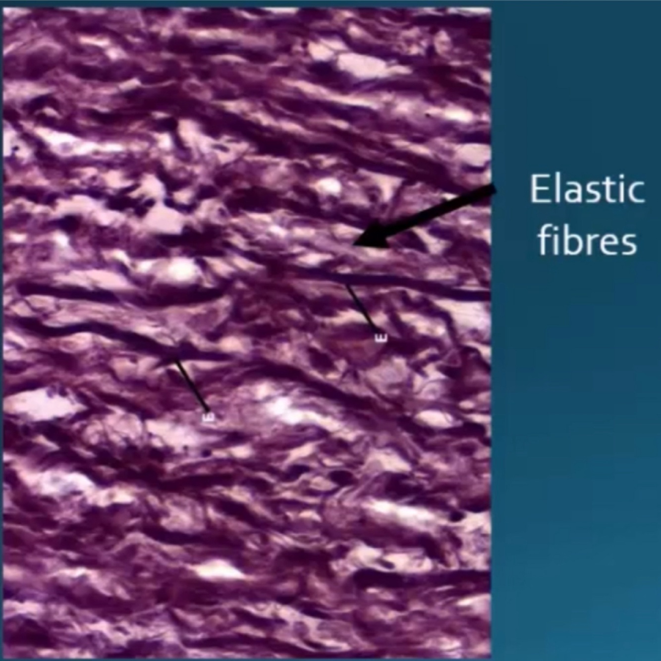 What fibre type in connective tissue cross links together to provide high tensile strength to resist stretching and give ligaments and tendons their resilience and strength?