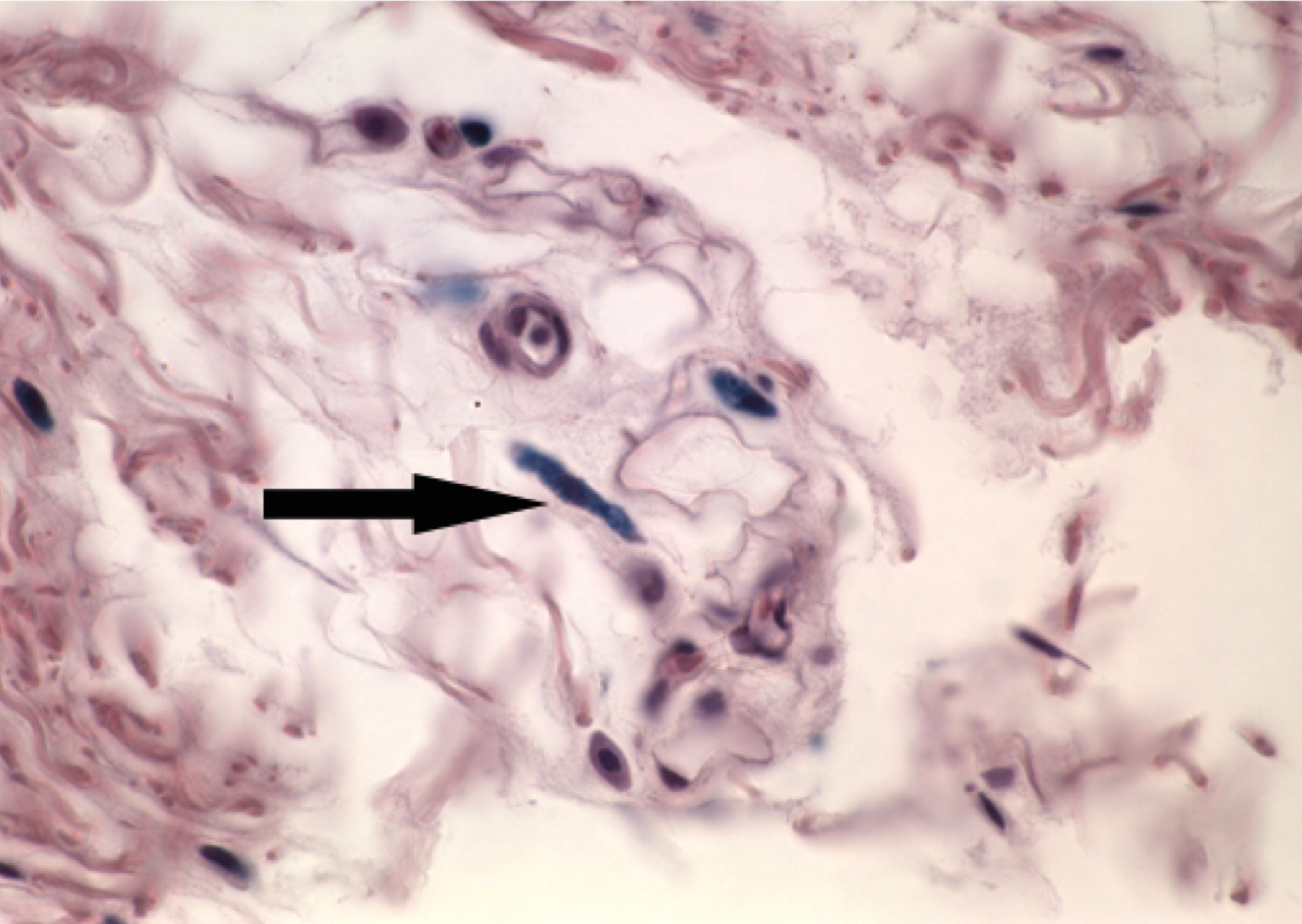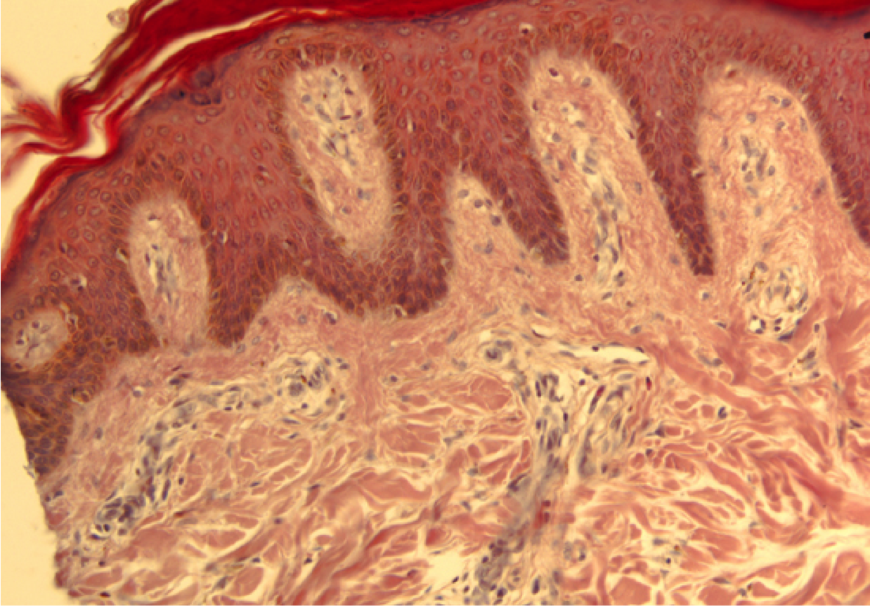 Elastic fibers stained in the dermis