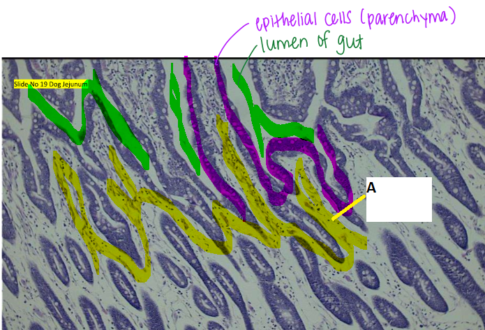 Tissue at A (marked yellow)