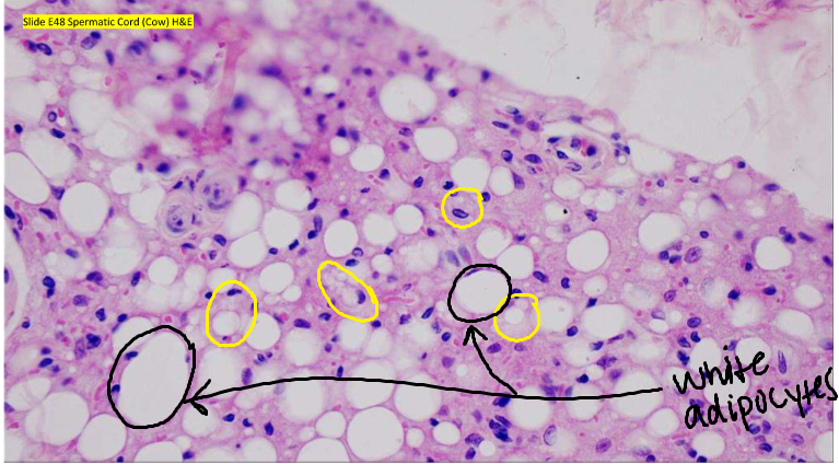 Unilocular/white adipocytes; single lipid droplet