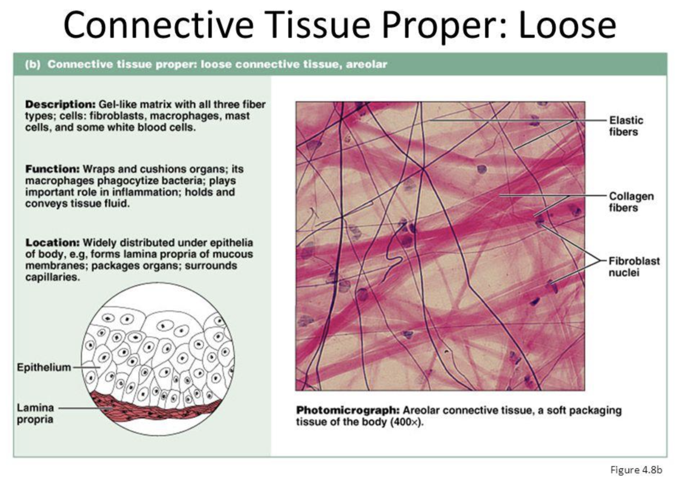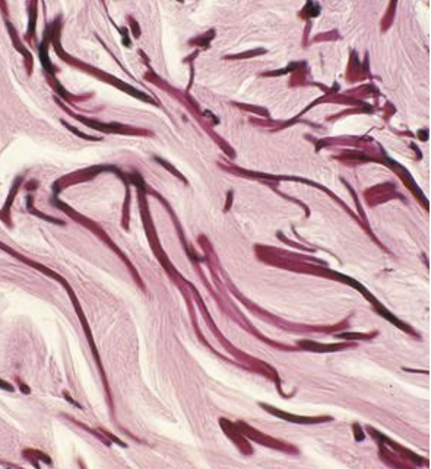 Most abundant and widely distributed. Forms collagen fibers of ECM