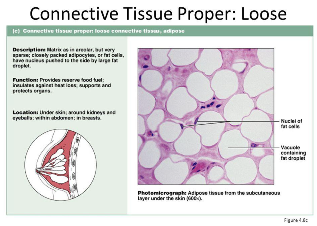 Tissue with large population of adipocytes also serves to cushion and insulate (skin, kidney)