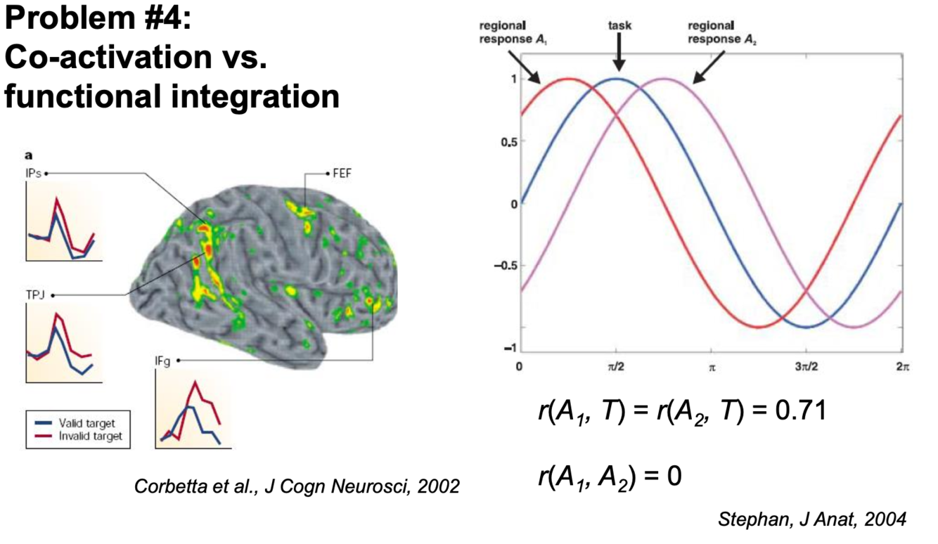 Brain mapping challenges: Describe the problem of Co-activation vs Functional connectivity