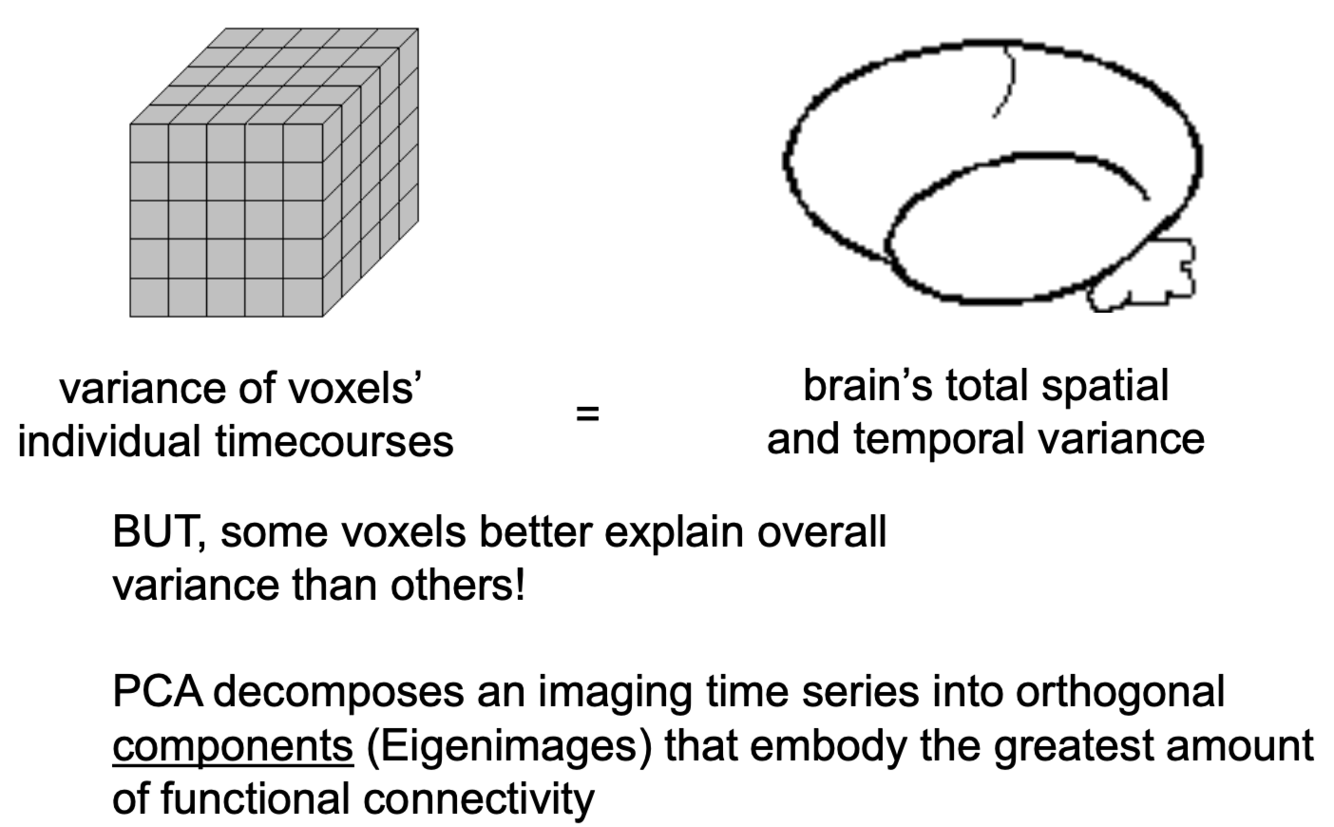 PCA is an algorithm which allows us to examine which voxels explain the most variance in all the other voxels across space and time, and extract these. Thereby, the “principle components” are left, which are the statistically most important areas in the brain.