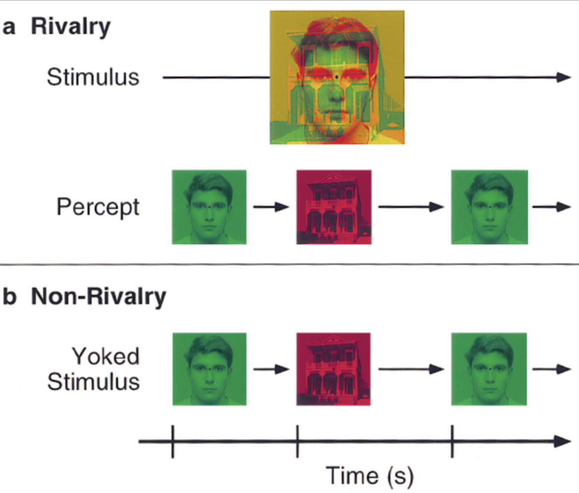 face vs house images -> face area vs place area activation corresponds with conscious experience