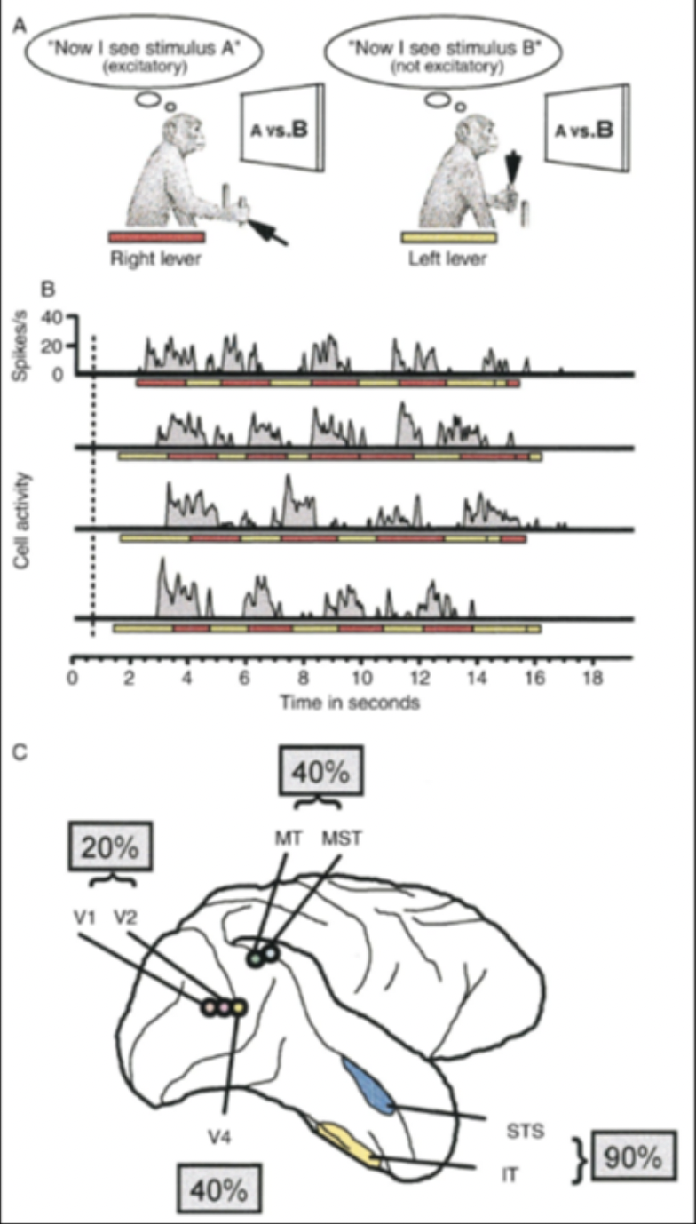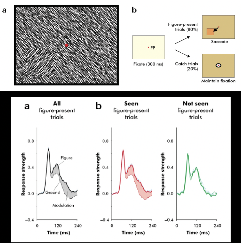 Supported by experiments with monkeys making saccades: shows early-stage processing, but also late-stage recurrent activity only when stimulus is consciously seen