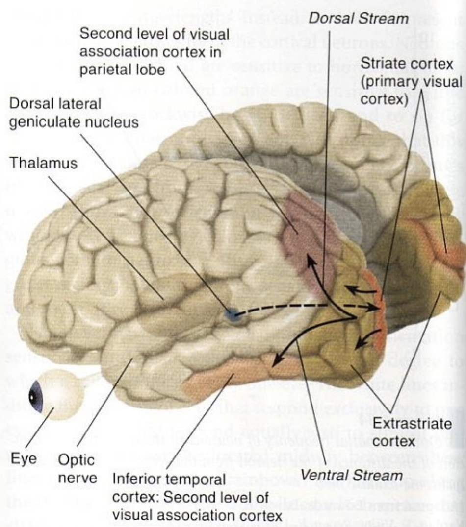 Dorsal = where/how pathway. Unconscious (action direction)?