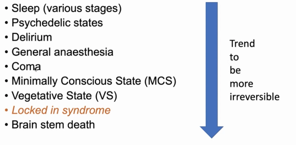 There is a scale of Unconsciousness, ranging from sleep to brain stem death. What is locked in syndrome?