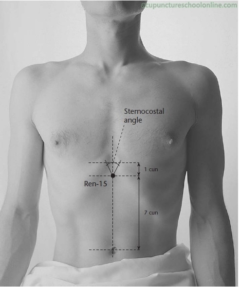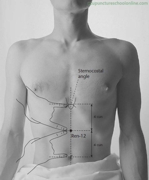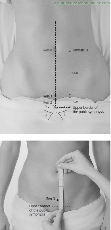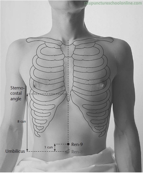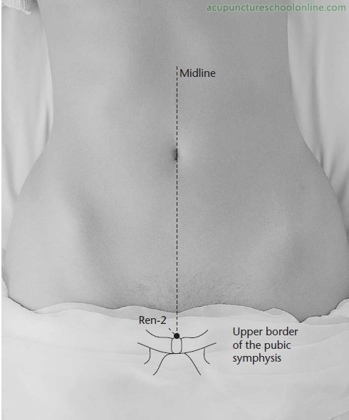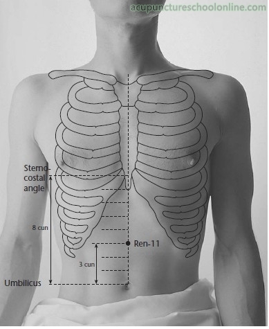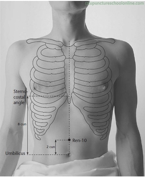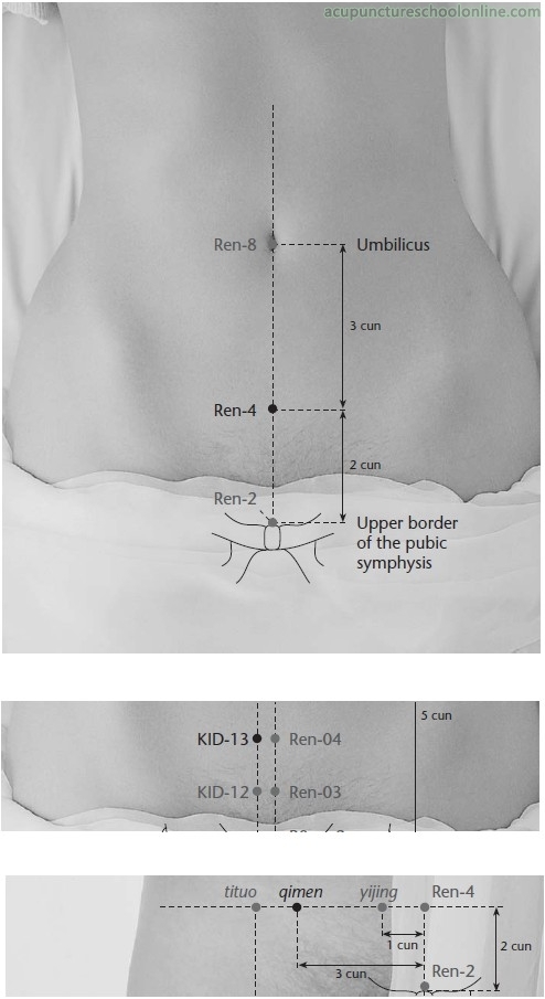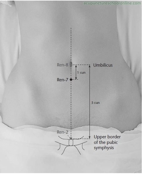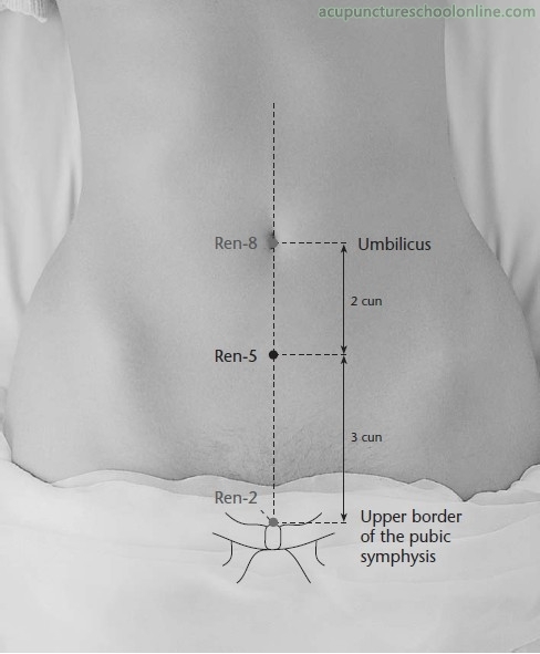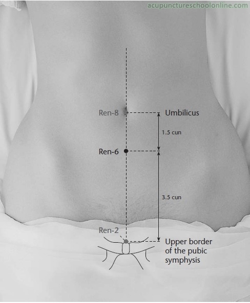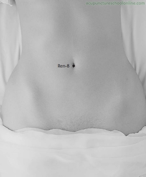 Meeting point of the Conception vessel with the Spleen, Kidney, Small Intestine and Sanjiao channels