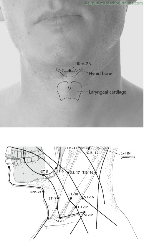 Meeting point of the Conception vessel with the Small Intestine, Sanjiao and Stomach channels