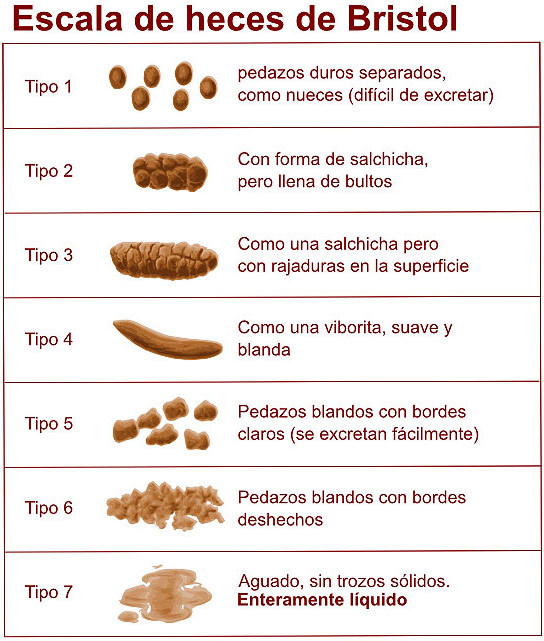 1-2: Estrenimiento 3-4: Ideales 5-7: Diarrea