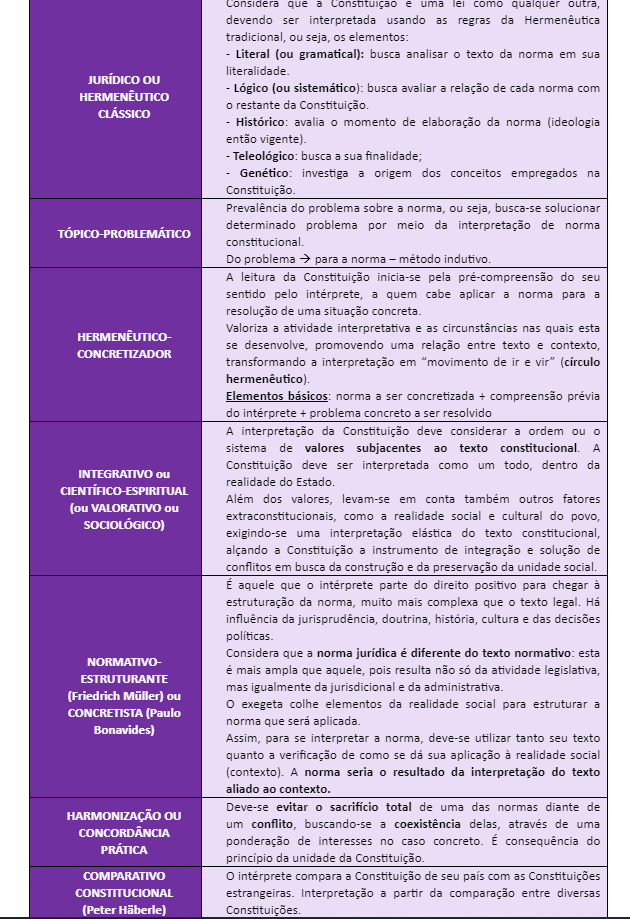 No método hermenêutico-concretizador há prevalência do texto constitucional sobre o problema. Já no método tópico-problemático há prevalência do problema sobre a norma.