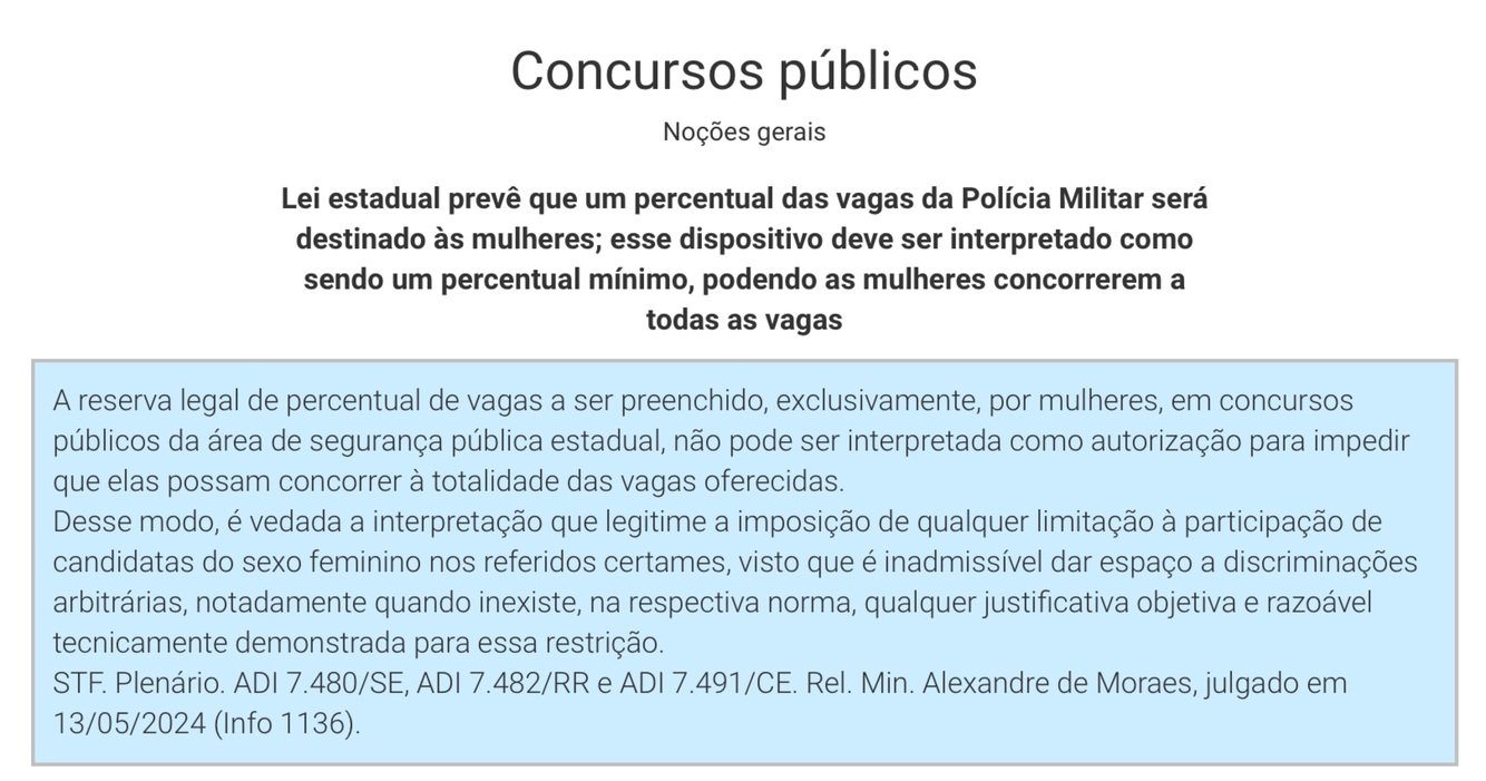 É constitucional Lei estadual que prevê um percentual das vagas da Polícia Militar destinado às mulheres? Como o STF entende a questão?