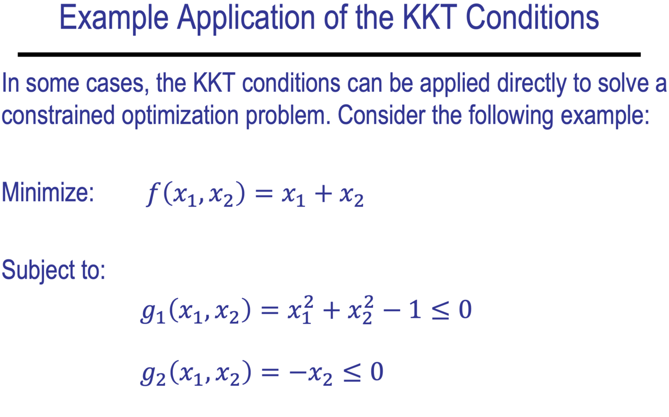 Even if you can “solve” a constrained optimization problem using the KKT conditions to find a point 𝒙* , we are not guaranteed that the point is a local optimum. Why is that?