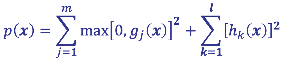 In the exterior penalty function method, the penalty function 𝑝(x) is formulated as