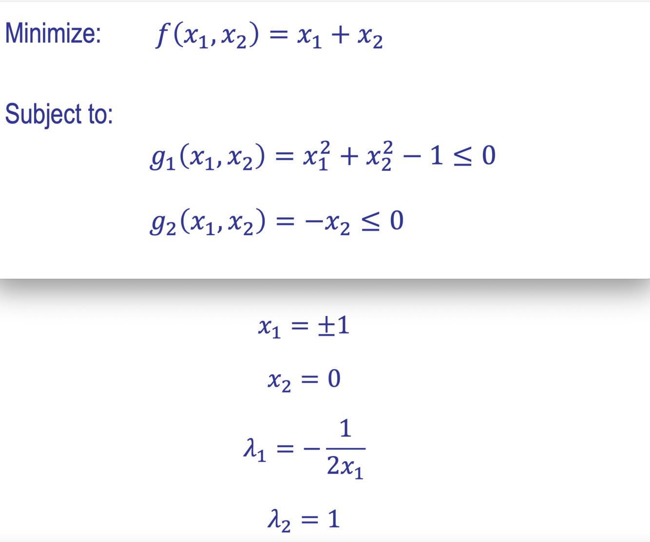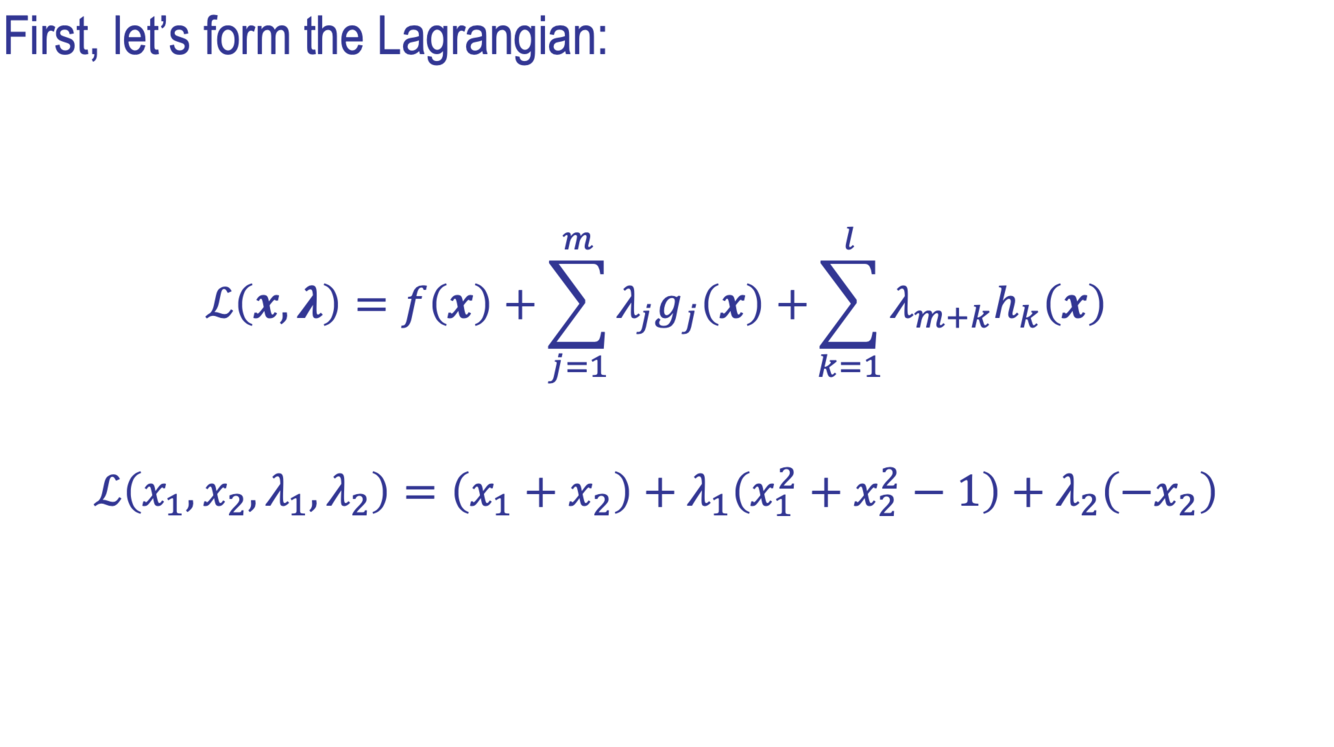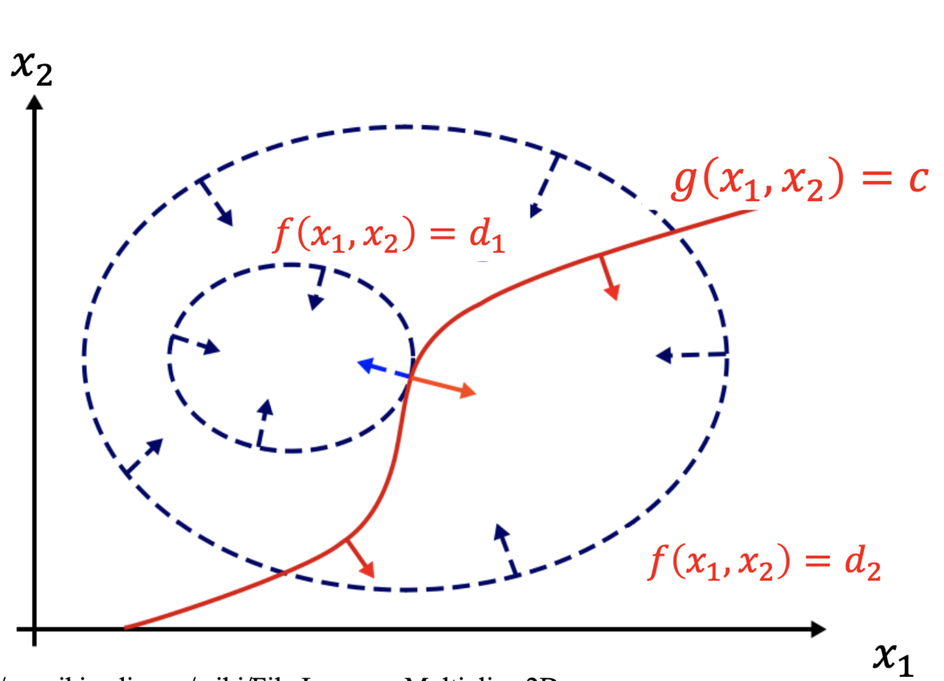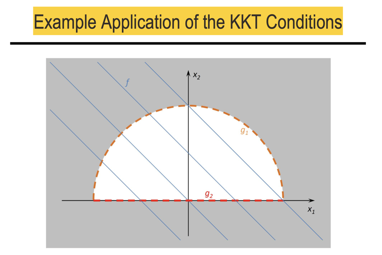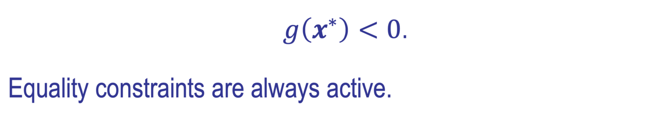line, so the objective function’s gradient must point in exactly the opposite direction as the inequality constraint’s gradient