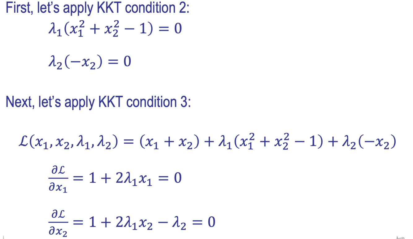What are the second and third KKT conditions of this example problem?