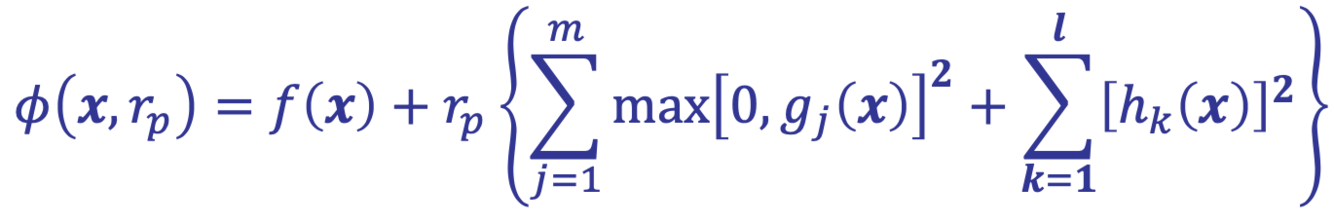 In the exterior penalty function method, the penalty function 𝑝(x) is formulated as