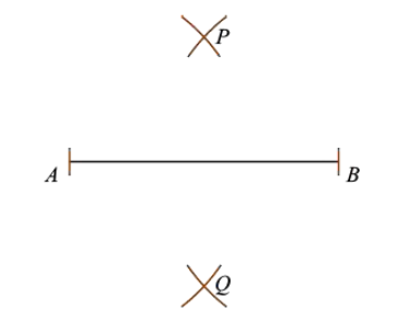Place the needle end of the compass at A. With a radius greater than half the length of AB, draw an arc above and below AB