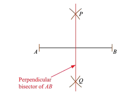 Place the needle end of the compass at A. With a radius greater than half the length of AB, draw an arc above and below AB