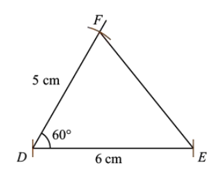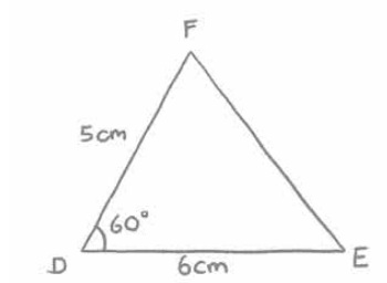 DE = 6 cm, DF = 5 cm and angle FDE = 60º