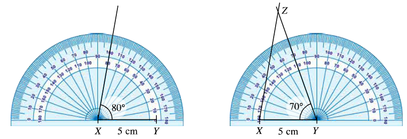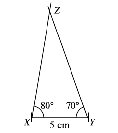 XY = 5 cm, Angle X = 80º and angle Y = 70º