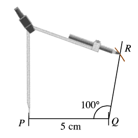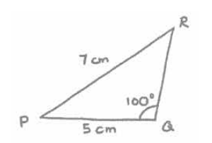 PR = 7 cm, PQ = 5 cm and angle Q = 100º